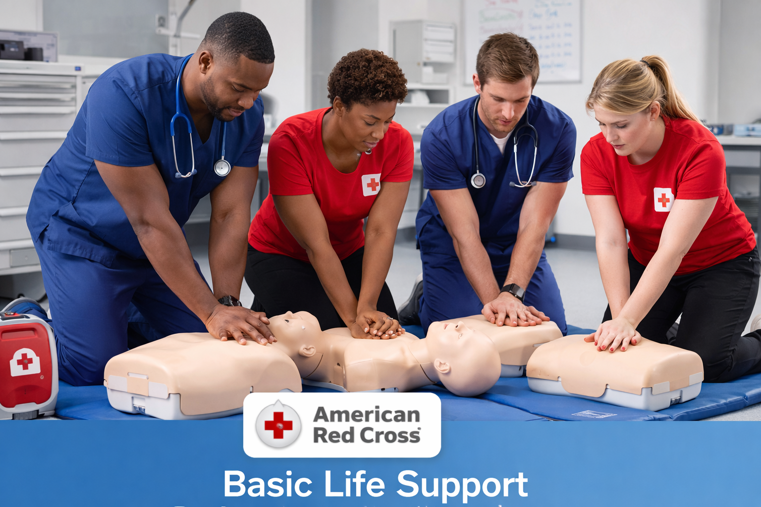 This course equips participants with the knowledge and skills to quickly assess recognize and care for cardiac arrest provide high-quality CPR and use an AED to optimize patient outcomes. Designed for both in-hospital and out-of-hospital healthcare clinicians this training is consistent with the 2025 evidence-based science guidelines and covers additional life-threatening emergencies including respiratory arrest drowning opioid overdose myocardial infarction life-threatening bleeding and obstructed airway in adults children and infants. Participants complete an online course followed by an in-person session led by an Instructor or self-directed solution that includes knowledge-based learning and hands-on skill practice. Participants are required to successfully complete the online course and final exam and demonstrate skill competency during skills practice and testing scenarios to earn an American Red Cross Basic Life Support certificate valid for two years.
